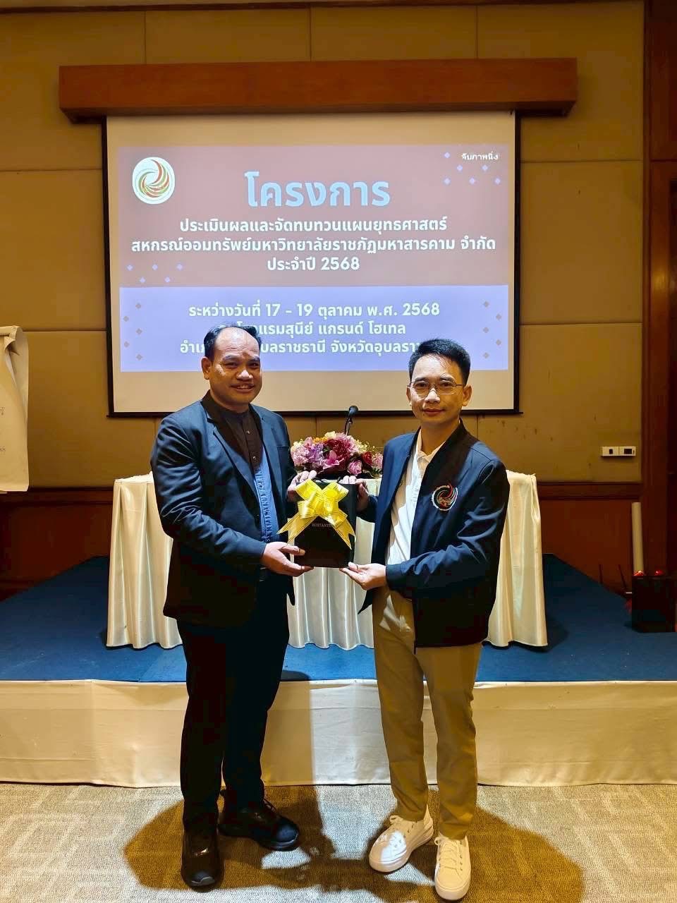 สหกรณ์ออมทรัพย์มหาวิทยาลัยราชภัฏมหาสารคาม จำกัด นำโดย นายประยงค์ จำปาศรี ประธานกรรมการ ได้นำผู้แทนสมาชิก คณะกรรมการ ผู้ตรวจสอบกิจการ ฝ่ายจัดการ เข้าร่วมโครงการ "ประเมินผลและทบทวนแผนปฏิบัติการสหกรณ์ออมทรัพย์มหาวิทยาลัยราชภัฏมหาสารคาม จำกัด ประจำปี 2568" โดยจัดขึ้นระหว่าง วันที่ 17-19 ตุลาคม พ.ศ. 2568 ณ โรงแรมสุนีย์แกรนด์ จังหวัดอุบลราชธานี ซึ่งได้รับเกียรติจากวิทยากรผู้เชี่ยวชาญด้านการทำแผนยุทธศาสตร์ จำนวน 3 ท่าน คือ 1) คุณธนกฤต วิชัยวงษ์ 2) อาจารย์ธเนศ ยืนสุข และ 3) อาจารย์ ดร.ณพรรธนนท์ ทองปาน นั้น